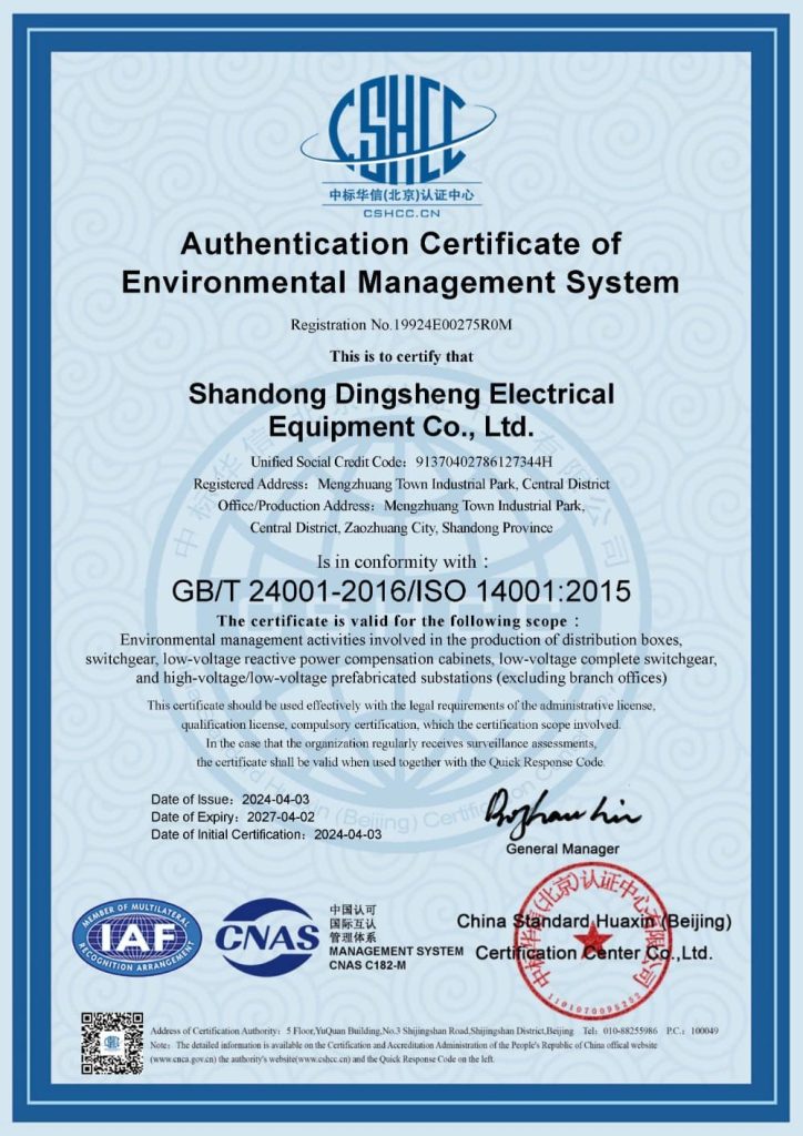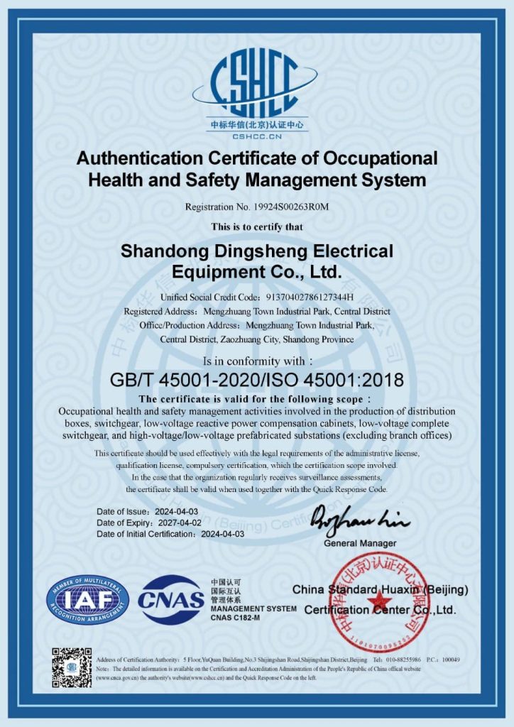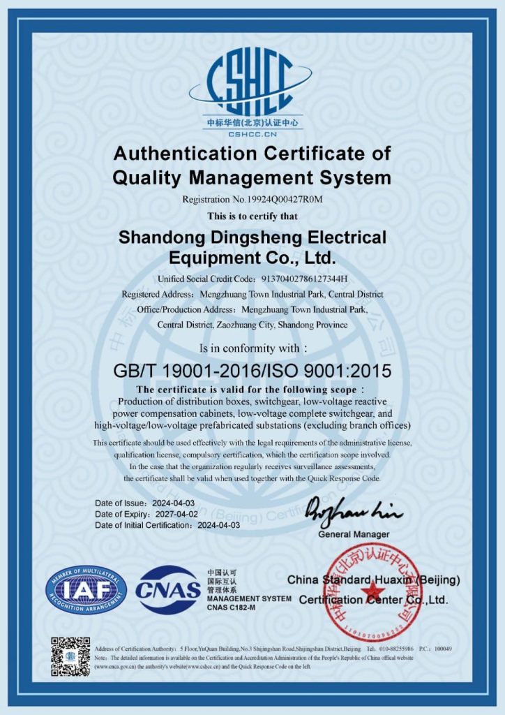 - Established on March 15, 2006, formerly known as Zaozhuang Dingsheng Electrical Equipment Co., Ltd., specializing in the production of high and low voltage switchgear assemblies.