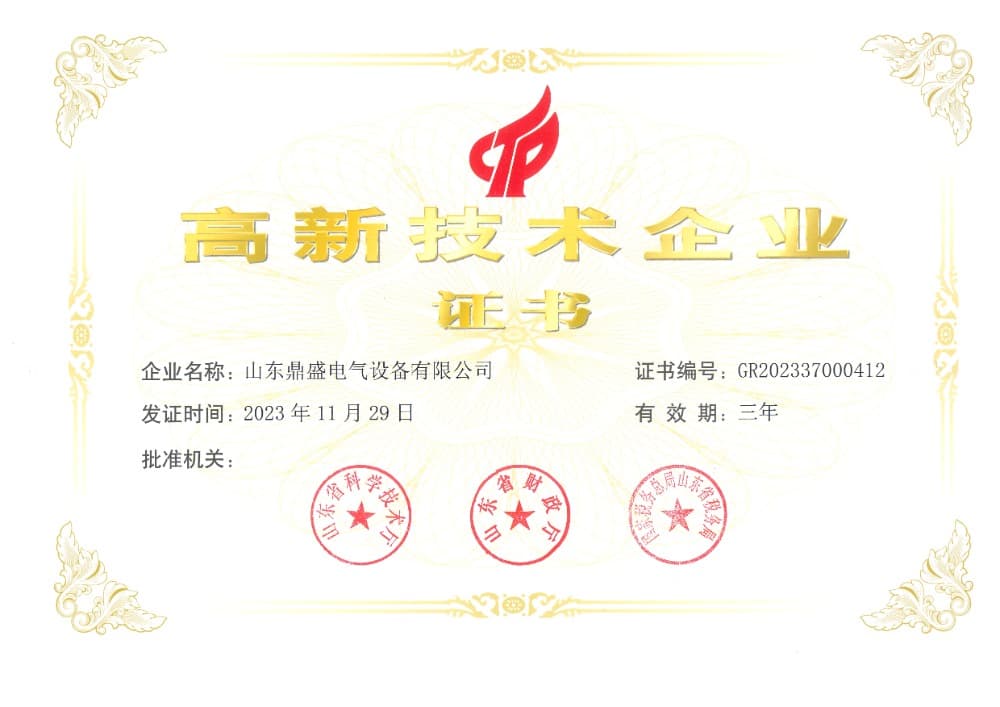 Shandong Dingsheng Electrical Equipment Co., Ltd. is a national high-tech enterprise and a national-level specialized, sophisticated, distinctive and innovative "Little Giant" enterprise. It focuses on the R&D and production of high and low voltage switchgear, charging piles and energy storage equipment, with a current staff of 220 and 20,000 square meters of standard factory buildings.